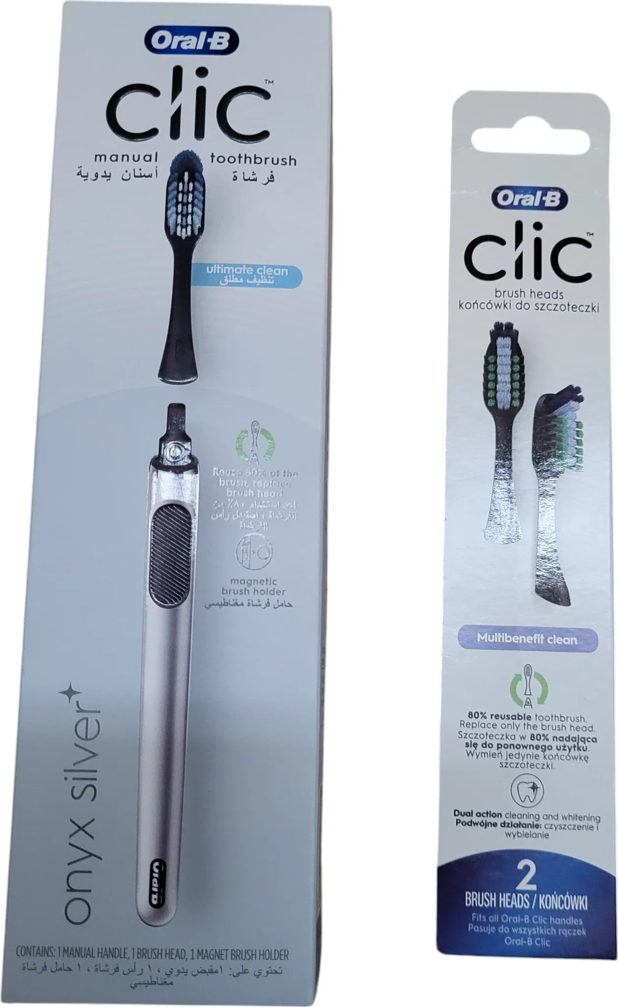 Nicht nur aus Umweltsicht ist die Oral-B Clic ein Gewinn, sondern auch in puncto Design und Benutzerfreundlichkeit ist sie wegweisend. Erwarten Sie mehr von Ihrer Zahnbürste – erwarten Sie Expertenreinigungsleistung und ästhetische Perfektion mit der Oral-B Clic Zahnbürste in Onyx Silver. Erleben Sie selbst, warum die Oral-B Clic das neue Must-Have für Ihre tägliche Zahnpflege ist.
